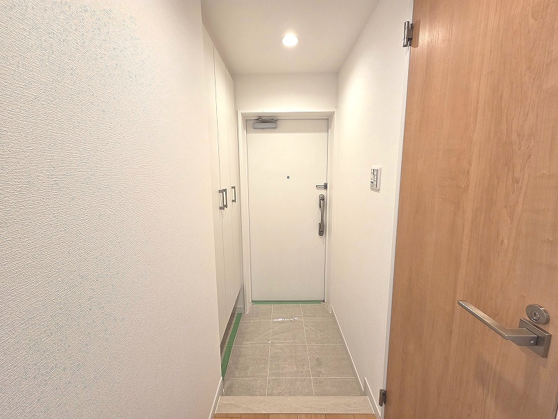 玄関は家の第一印象を左右する重要な場所。ほどよい広さとスタイリッシュな色遣いが印象的です。