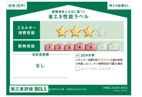 | 省エネ性能表示 | エネルギー消費性能:★★★ 断熱性能:5段階 |