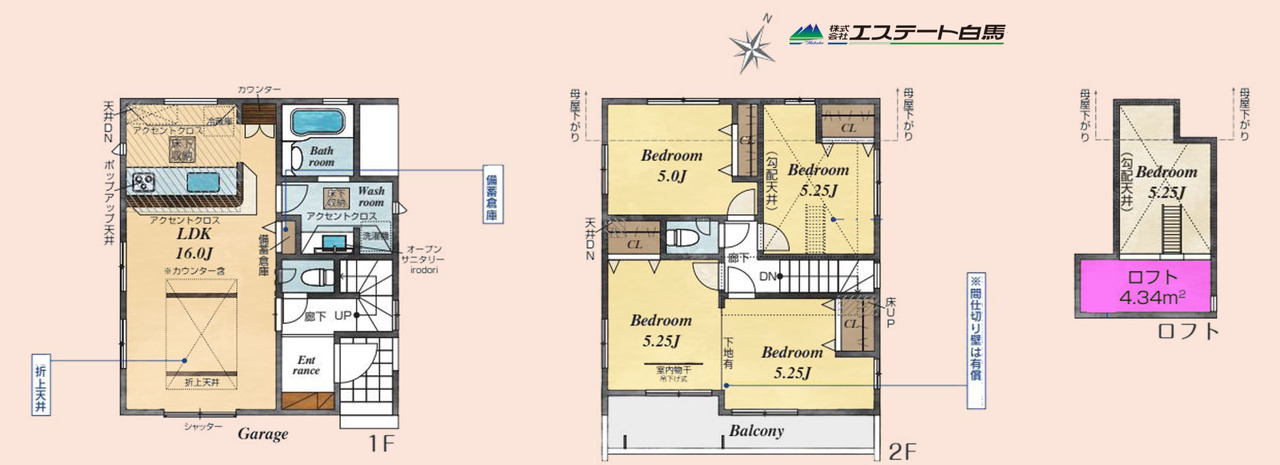 南道路につき日当たり良好、カースペース並列3台可能、季節物の収納等に便利なロフト、災害時にも安心の備蓄倉庫
