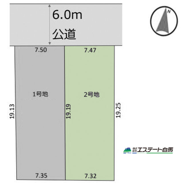 1号地 6m幅員の道路に面しておりお車の運転が苦手な方でも安心して出入りいただけます。