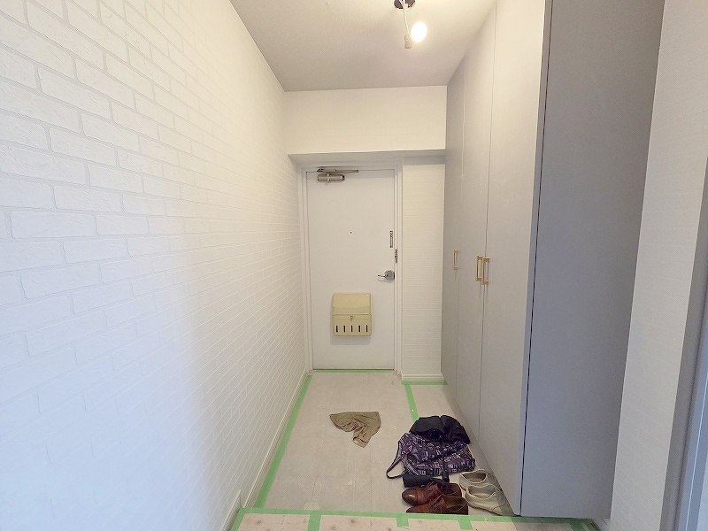コンパクトながらも、使い勝手の良い玄関スペース。明るいデザインと、収納スペースを効果的に配置することで、使い勝手を最大限に引き出しています。