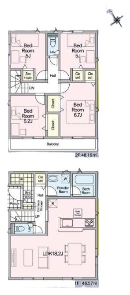 | 間取 | 4LDK (LDK18.2帖、洋室6.7帖、洋室5.2帖、洋室5帖、洋室5帖) | ||