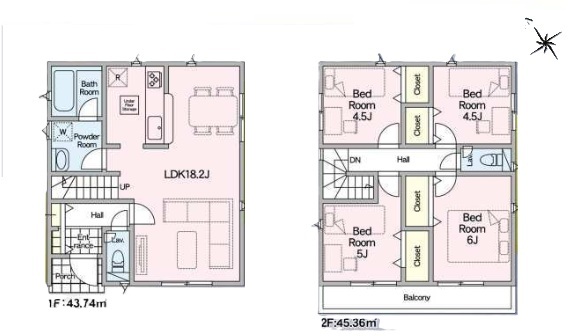 | 間取 | 4LDK (LDK18.2帖、洋室6帖、洋室5帖、洋室4.5帖、洋室4.5帖) | ||