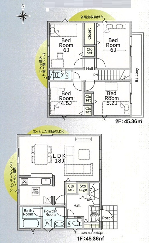 | 間取 | 4LDK (LDK18帖、洋室6帖、洋室6帖、洋室5.2帖、洋室4.5帖) | ||
