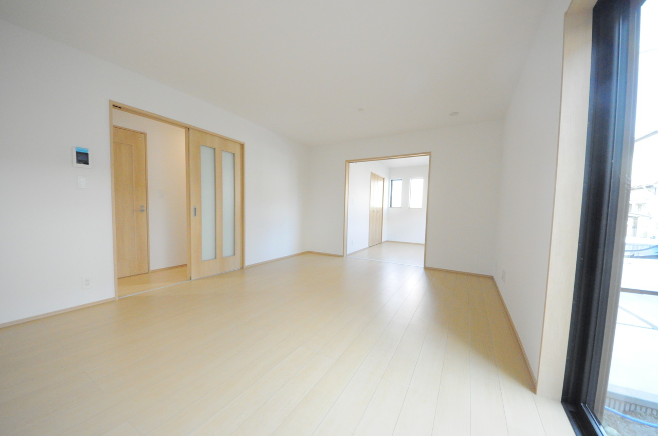 大きな開口部から明るい光が差し込む、日中の室内の明るさがこの部屋の魅力です。