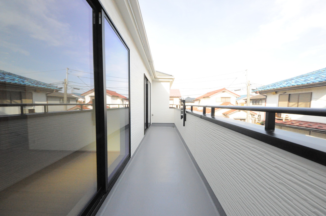 南側のお部屋から出入りできる、奥行きのあるワイドバルコニー。心地よい陽射しと暖かな風を楽しむことが出来ます。