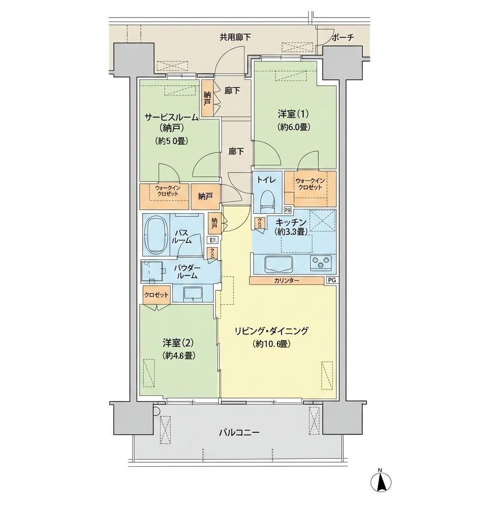 | 間取 | 2SDK (LD10.6帖、K3.3帖、洋室4.6帖、S5帖、洋室6帖) | ||