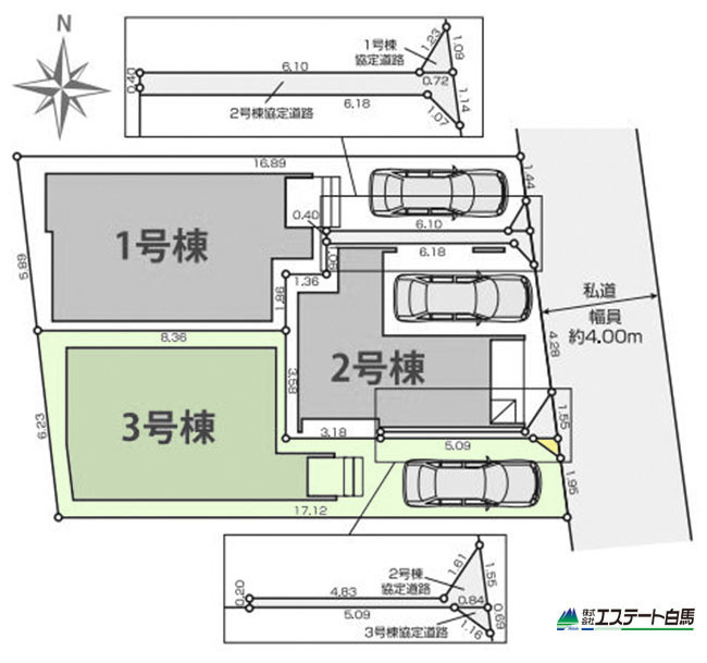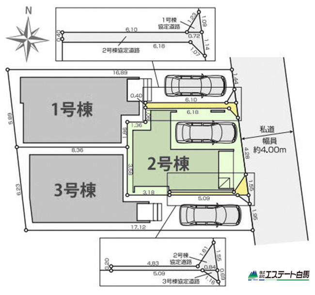 | 土地面積 | 57.84m² ~ 73.99m² 公簿 (路地状部分含(協定部分含)) | ||