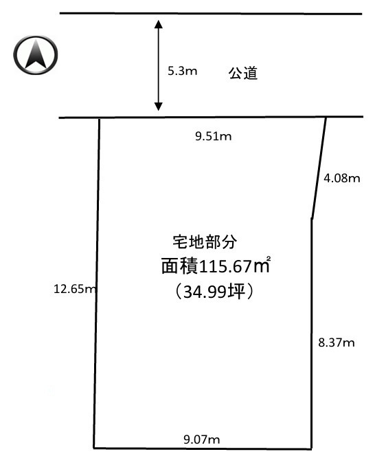 | 接道 | 北側5.3M公道に9.51M接道 | 取引態様 | 媒介 |