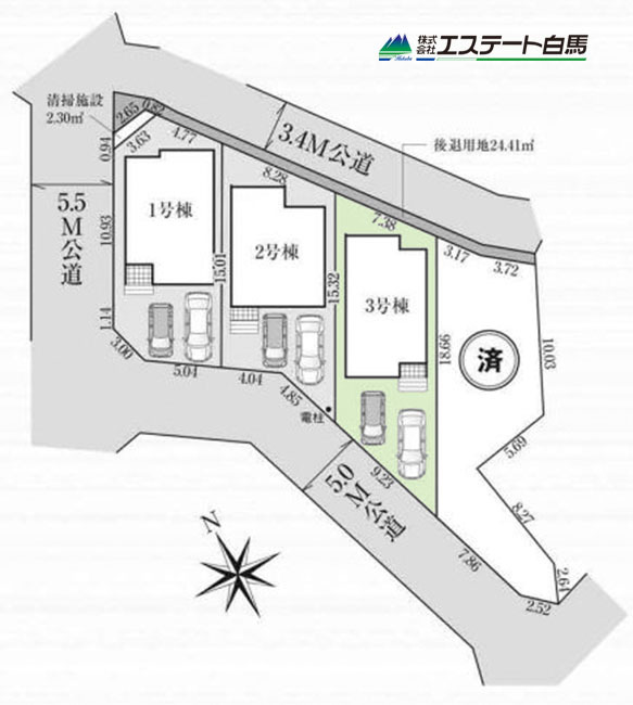 | 土地面積 | 109.1m² ~ 115.1m² 公簿 (セットバック24.41m²) | ||