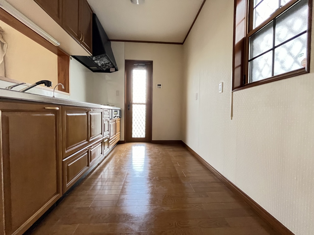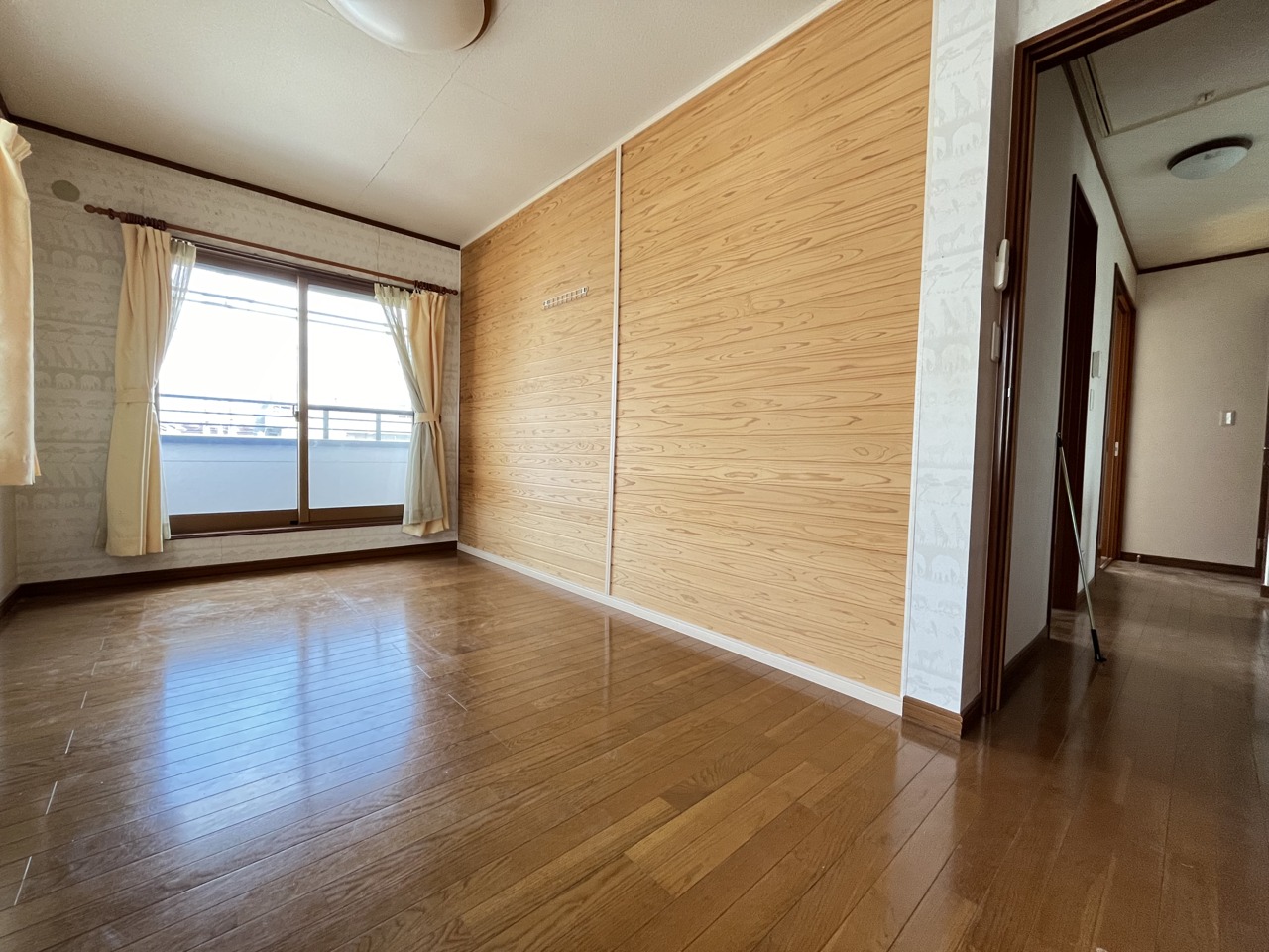 少し濃いめの木目フローリング、落ち着いた雰囲気が印象的です。
