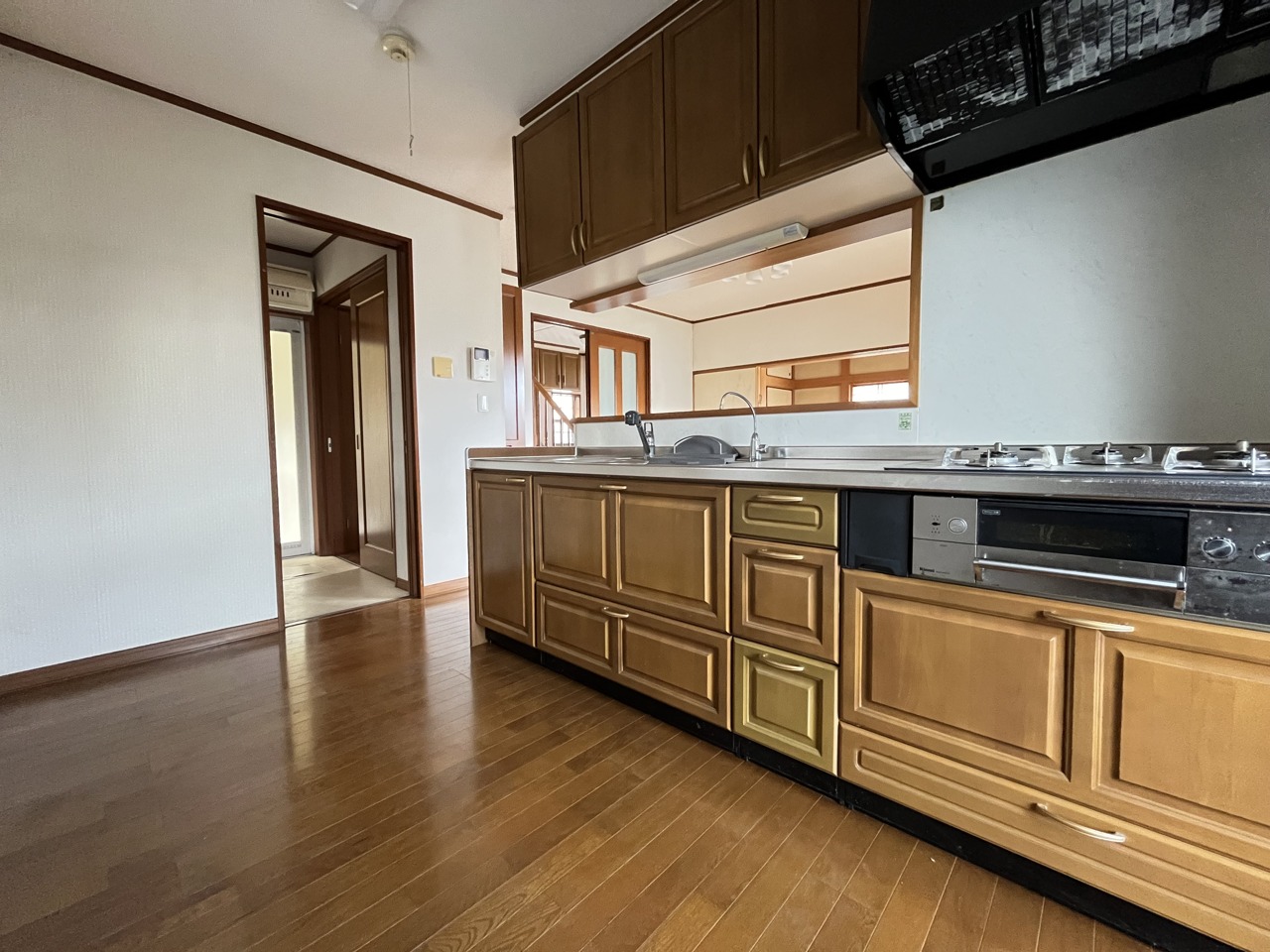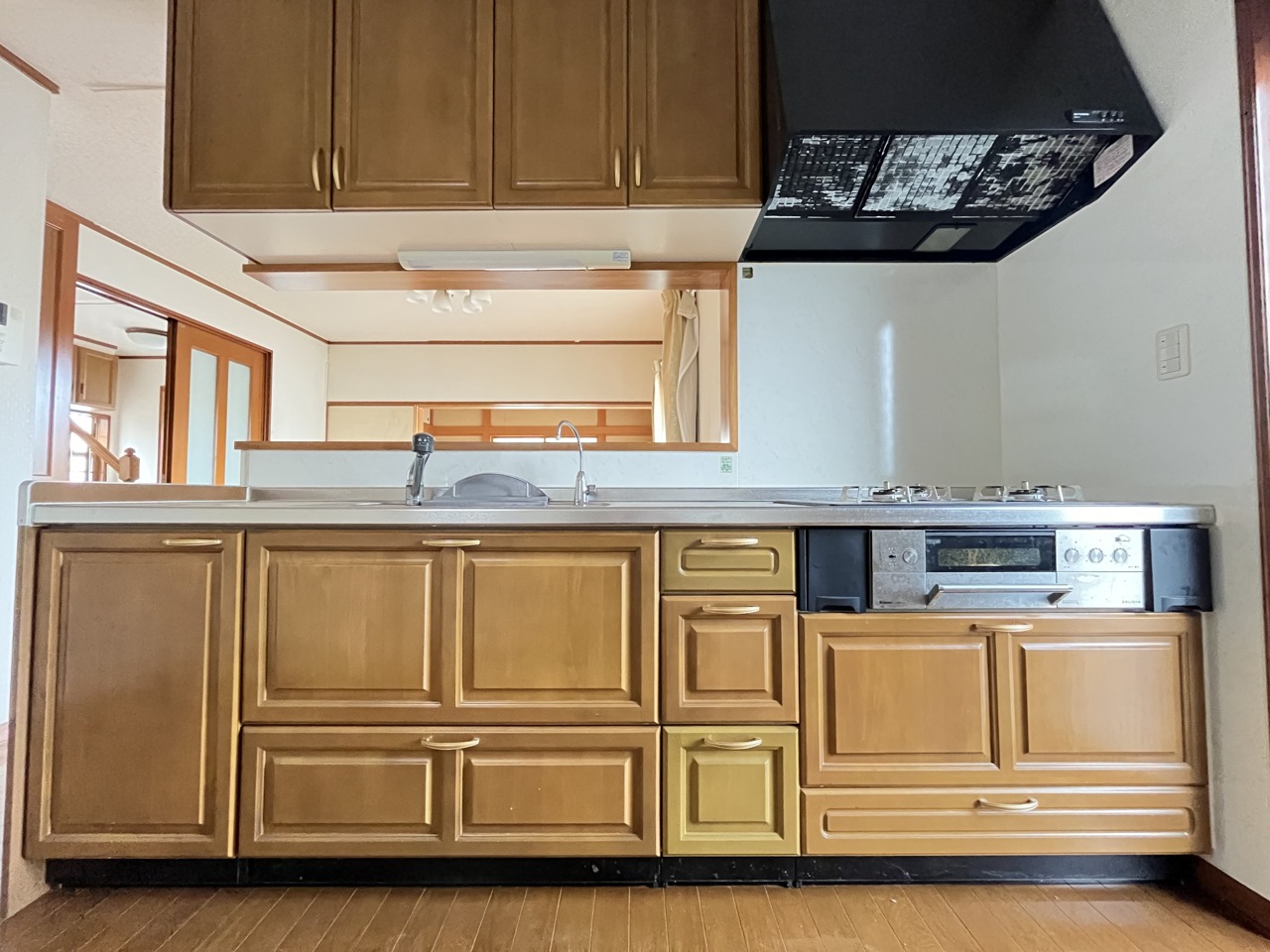 手を伸ばせばそこに収納が。安定した使用感の吊戸棚つきのキッチン空間。