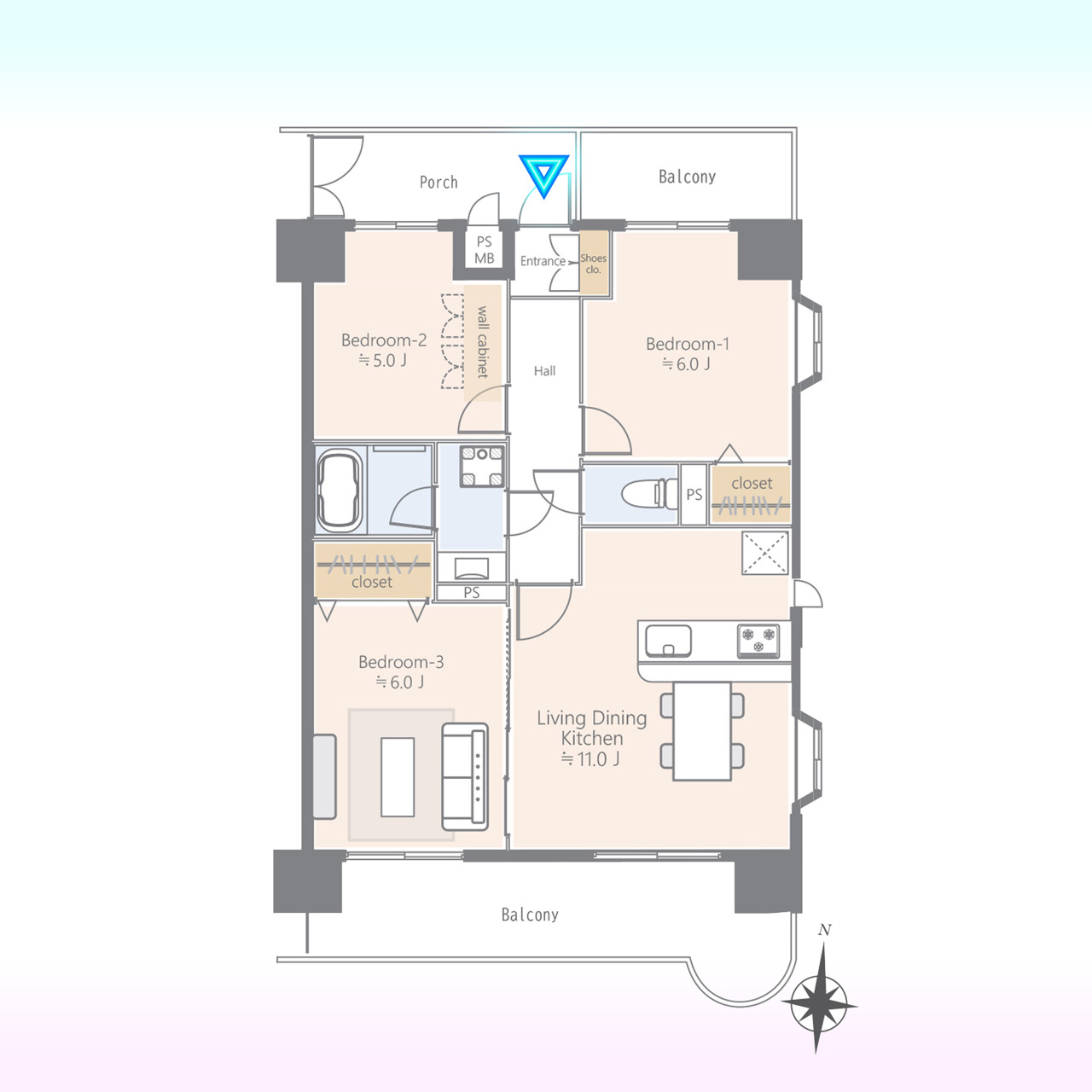 | 間取 | 3LDK (LDK11.0帖、洋室6.0帖、洋室5.0帖、洋室6.0帖) | ||