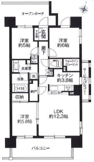 | バルコニー面積 | 12m² 南向き | ||