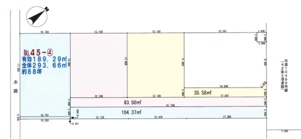 | 土地面積 | 293.66m² 実測 (路地状部分面積104.37平米含む) | ||