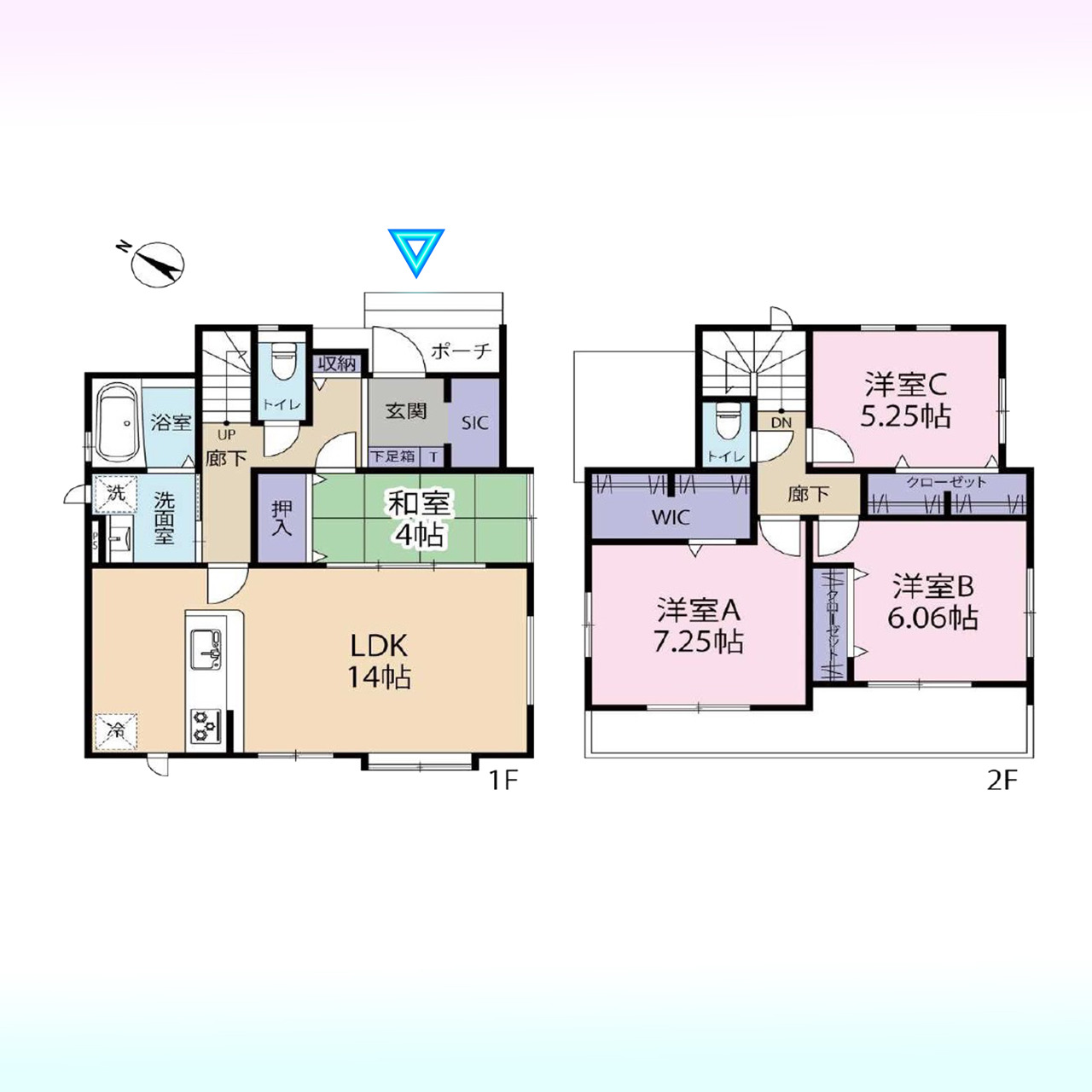 | 間取 | 4LDK (LDK14帖、和室4帖、洋室7.25帖、洋室6.06帖、洋室5.25帖) | ||
