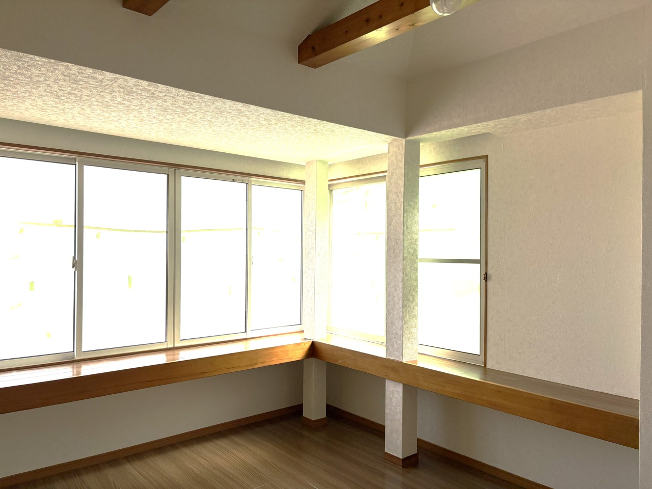 2階リビング・窓辺に広がる、心地よい開放感と温かな木のぬくもり。