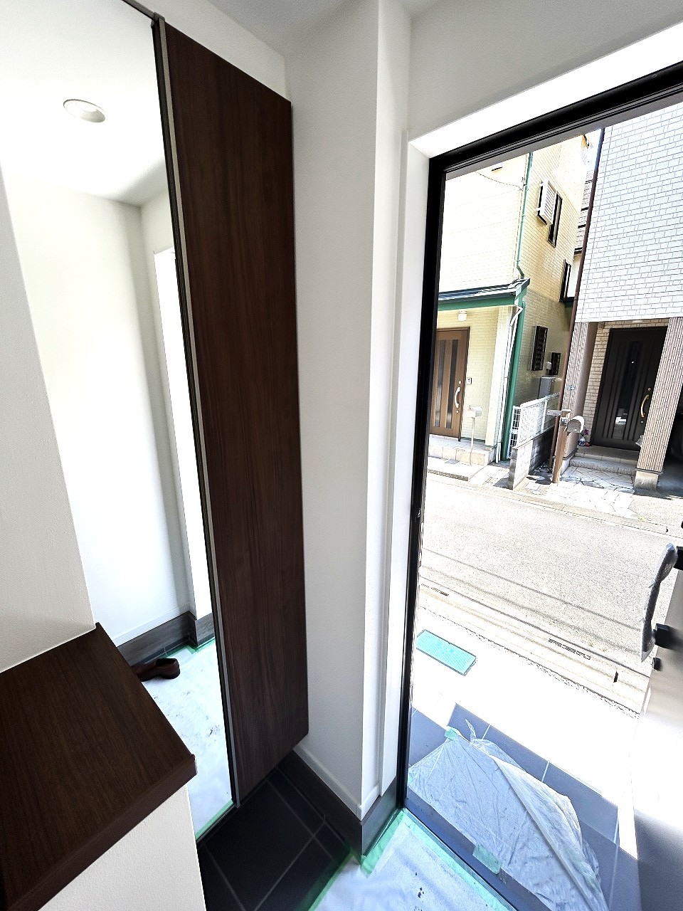 お宅の顔となる明るく開放的な玄関。ご家族皆様様の靴を収納できるスペースと全身鏡があり、お出掛け前に身だしなみチェックもできます。