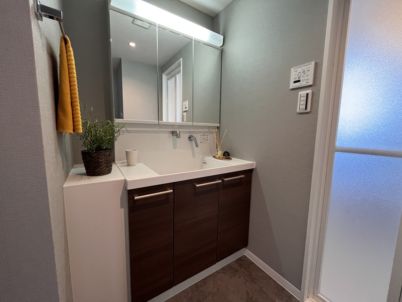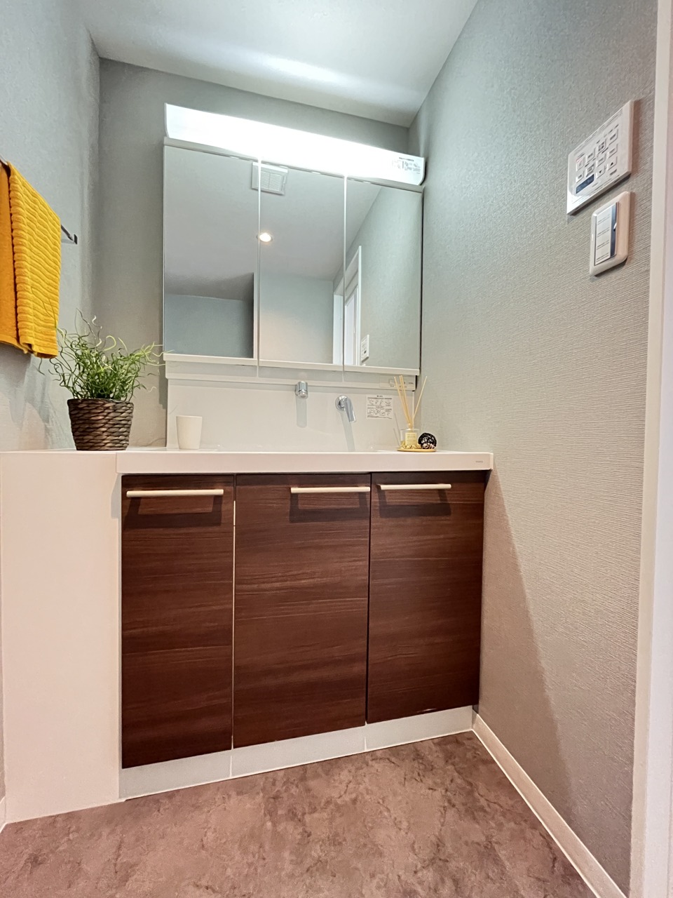 ゆとりの洗面スペースで朝の身支度もスムーズに行えます。