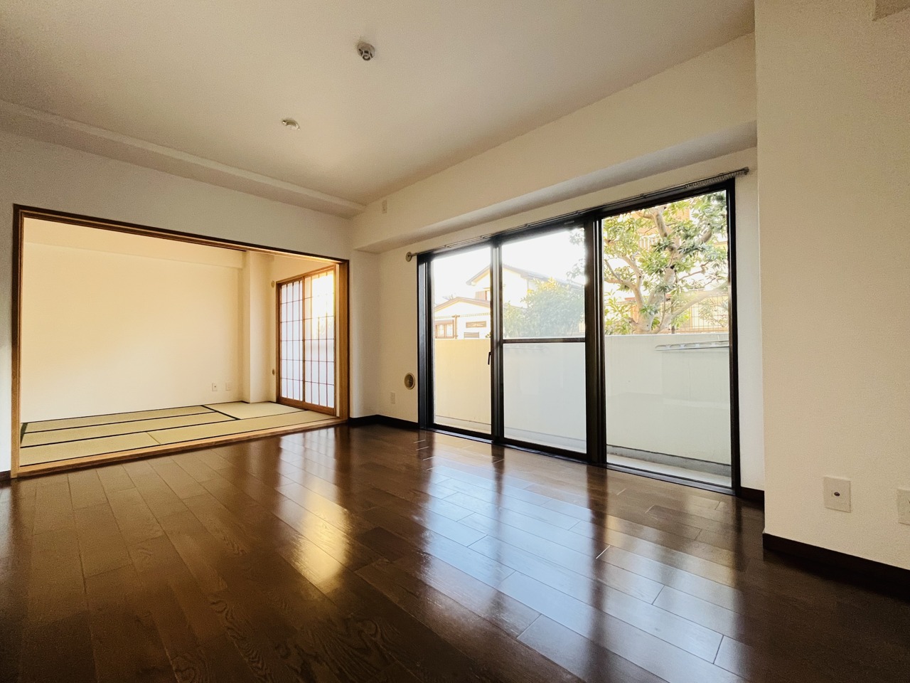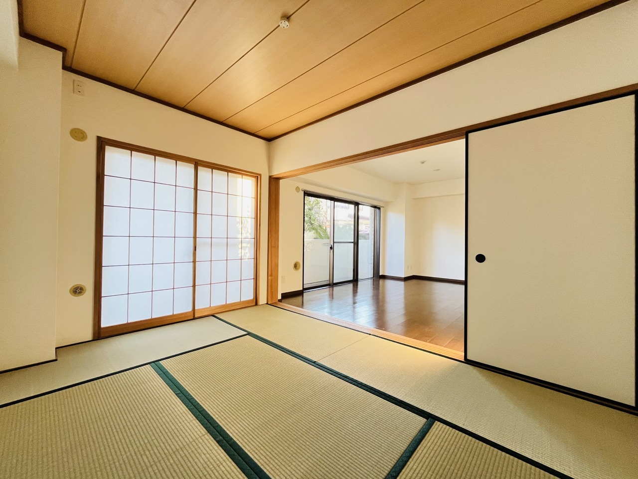 和室とリビングが続き間に。