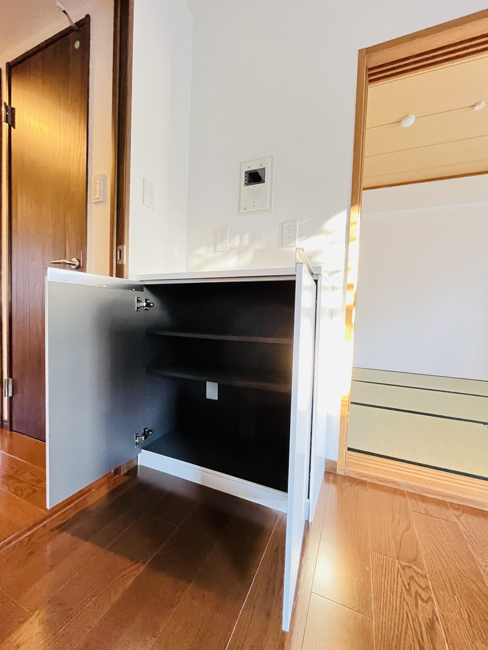 玄関を開けたらシューズボックス、使いやすい配置です。