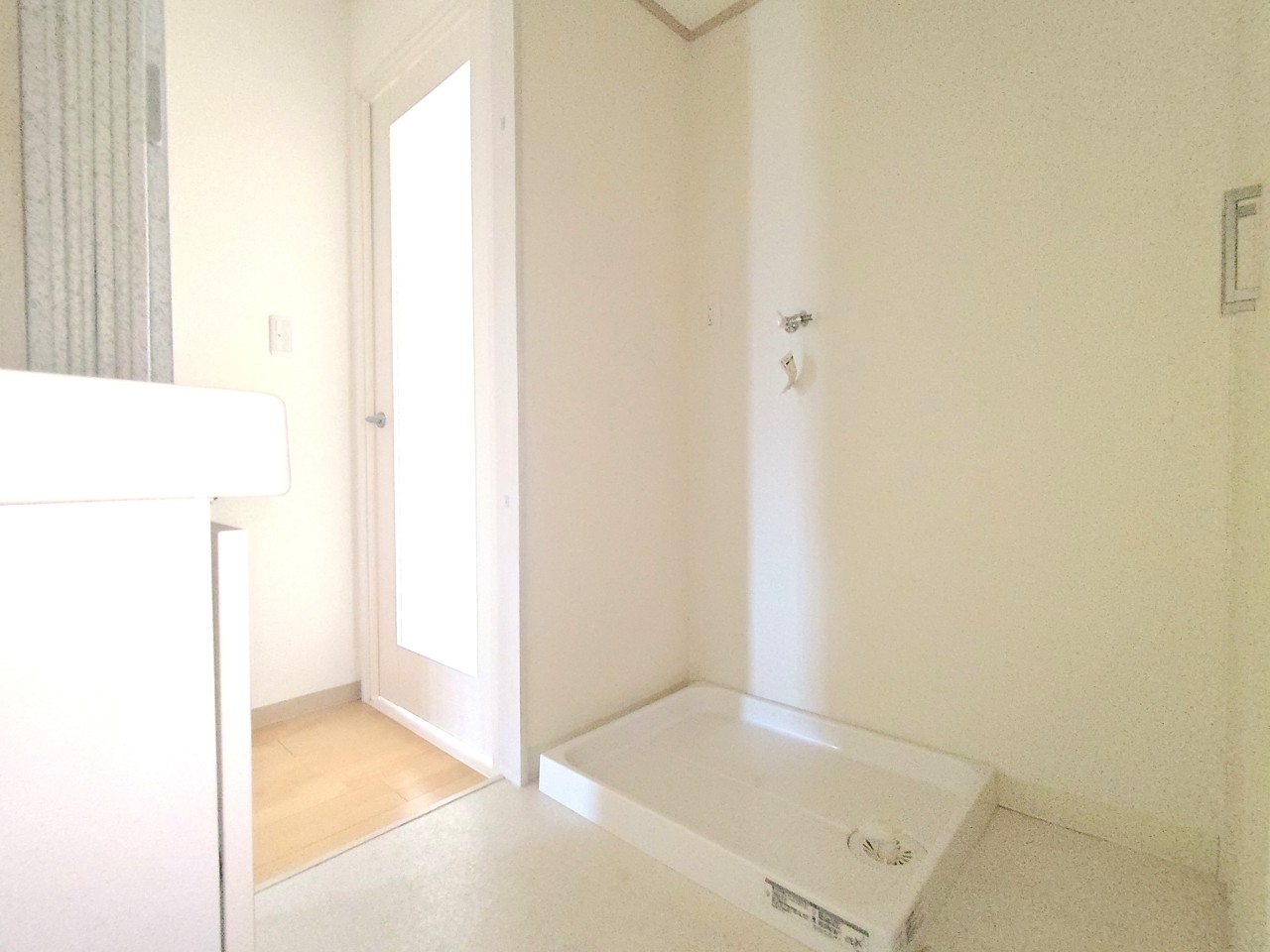 足元に設置された防水パンは、洗濯機運転中の振動・騒音を抑えてくれます。