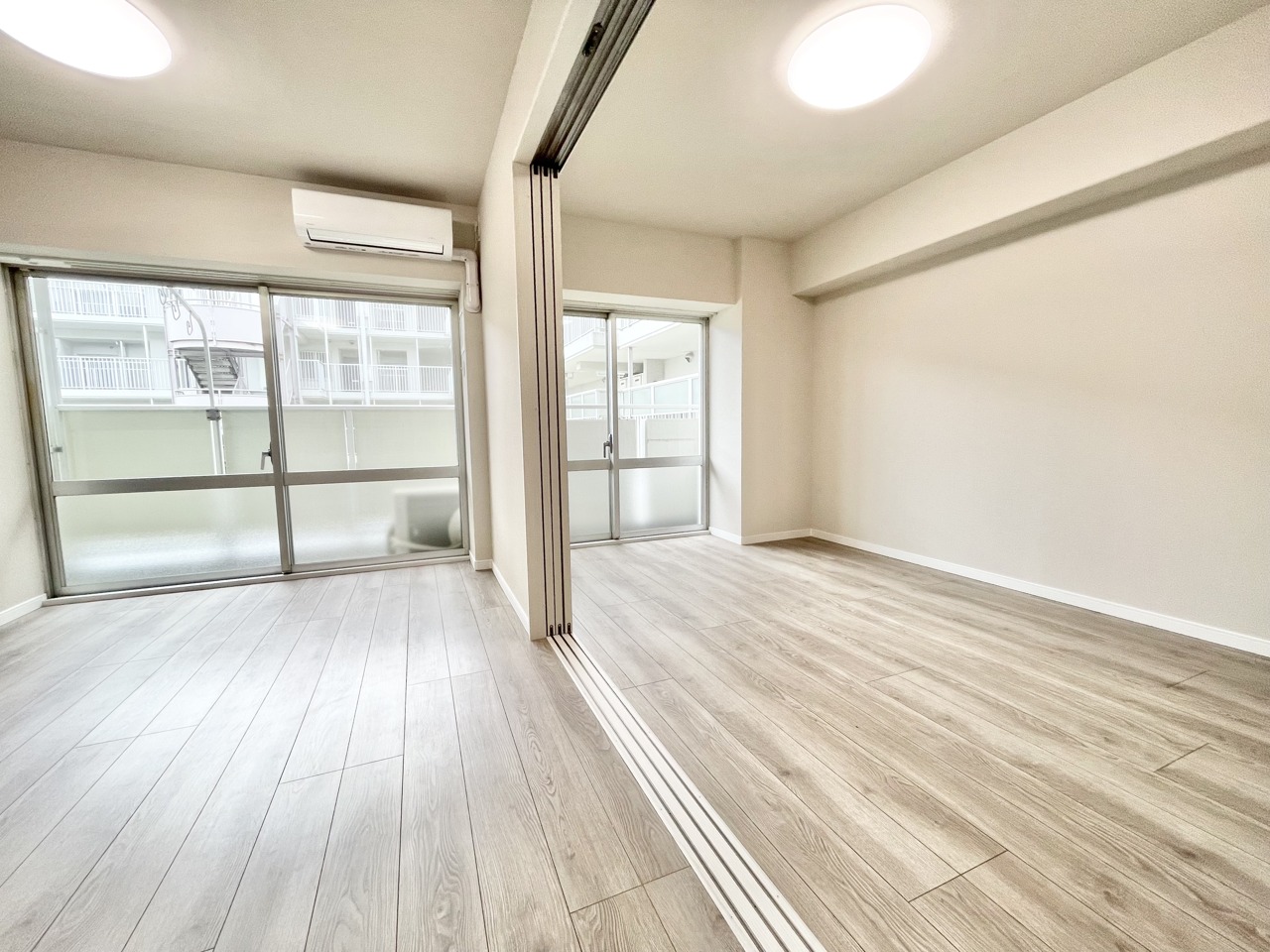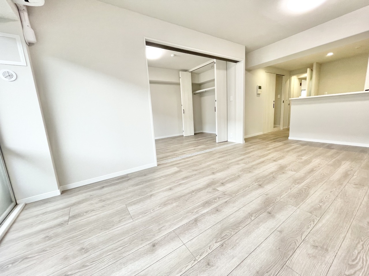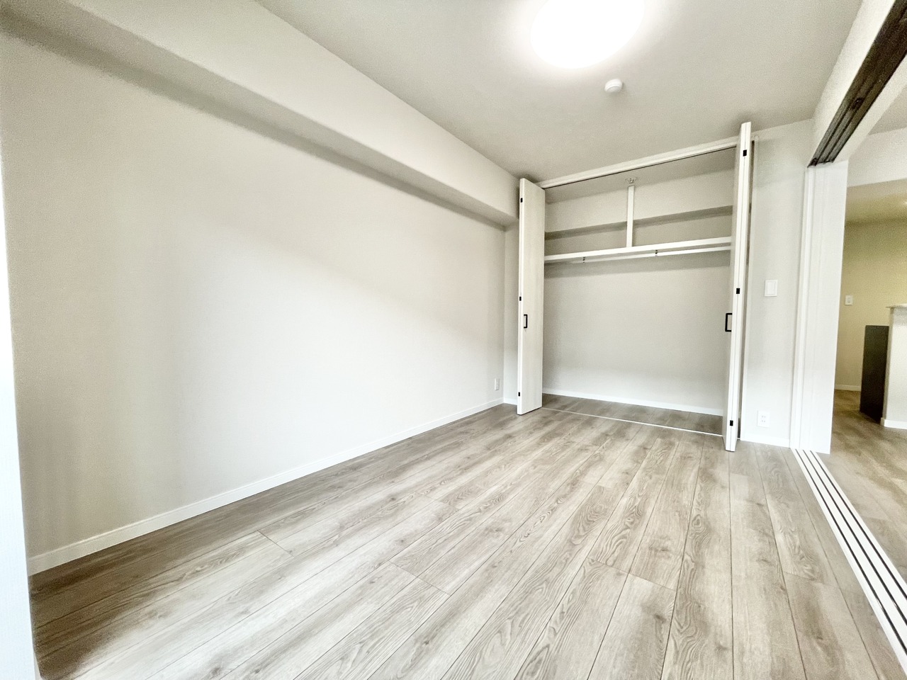 清潔感あふれる空間に、柔らかな木目調の床が心地よい広がりを演出しています。