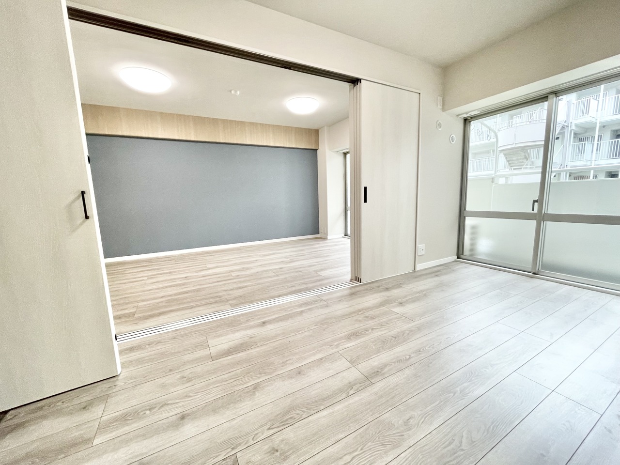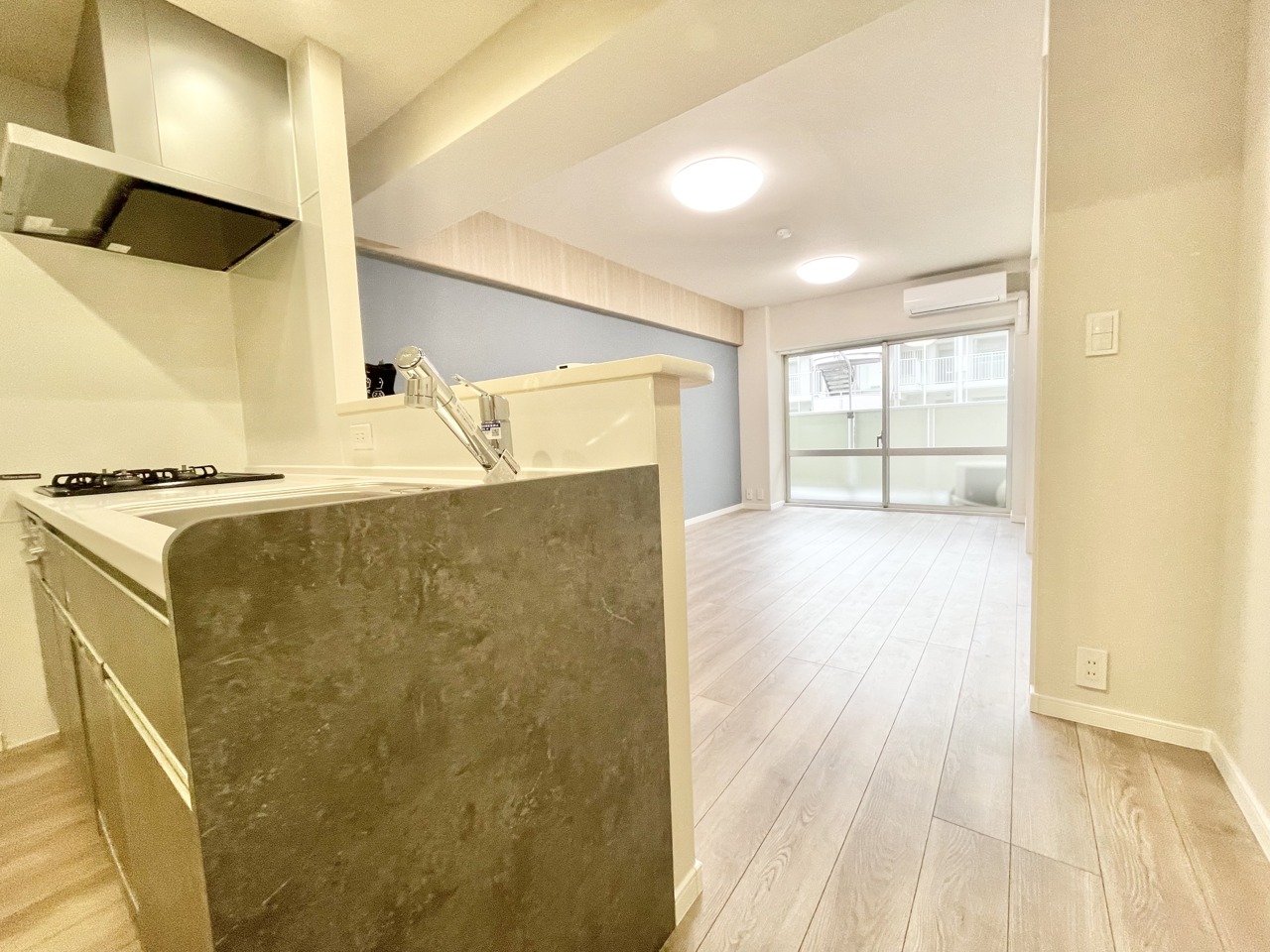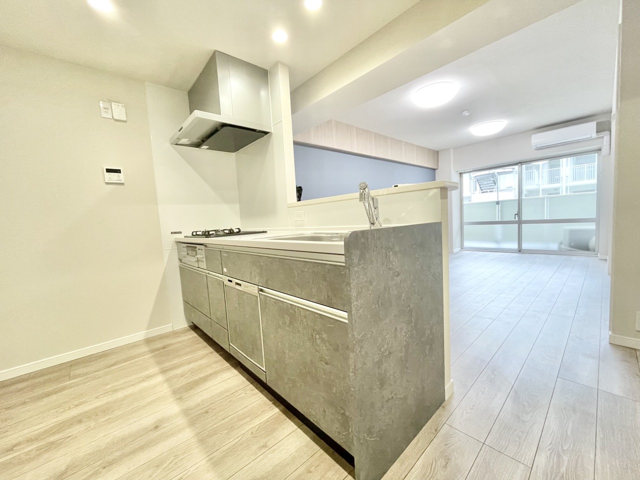 清潔感あふれる空間に、柔らかな木目調の床が心地よい広がりを演出しています。