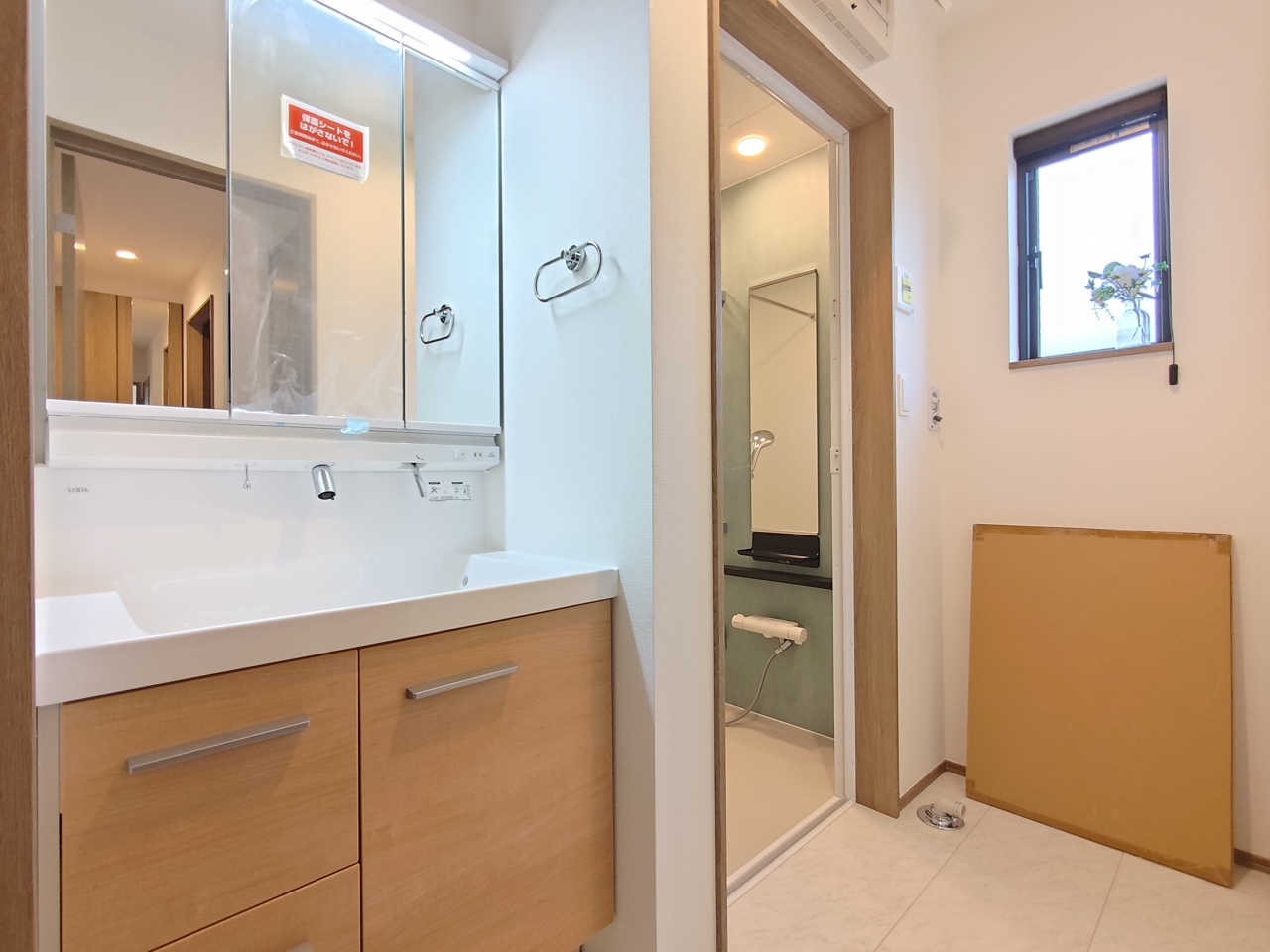 リビング側からも玄関側からも。 2WAYアクセス可能な洗面脱衣室。