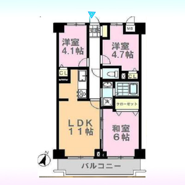 | 間取 | 3LDK (LDK11帖、洋室4.7帖、洋室4.1帖、和室6帖) | ||