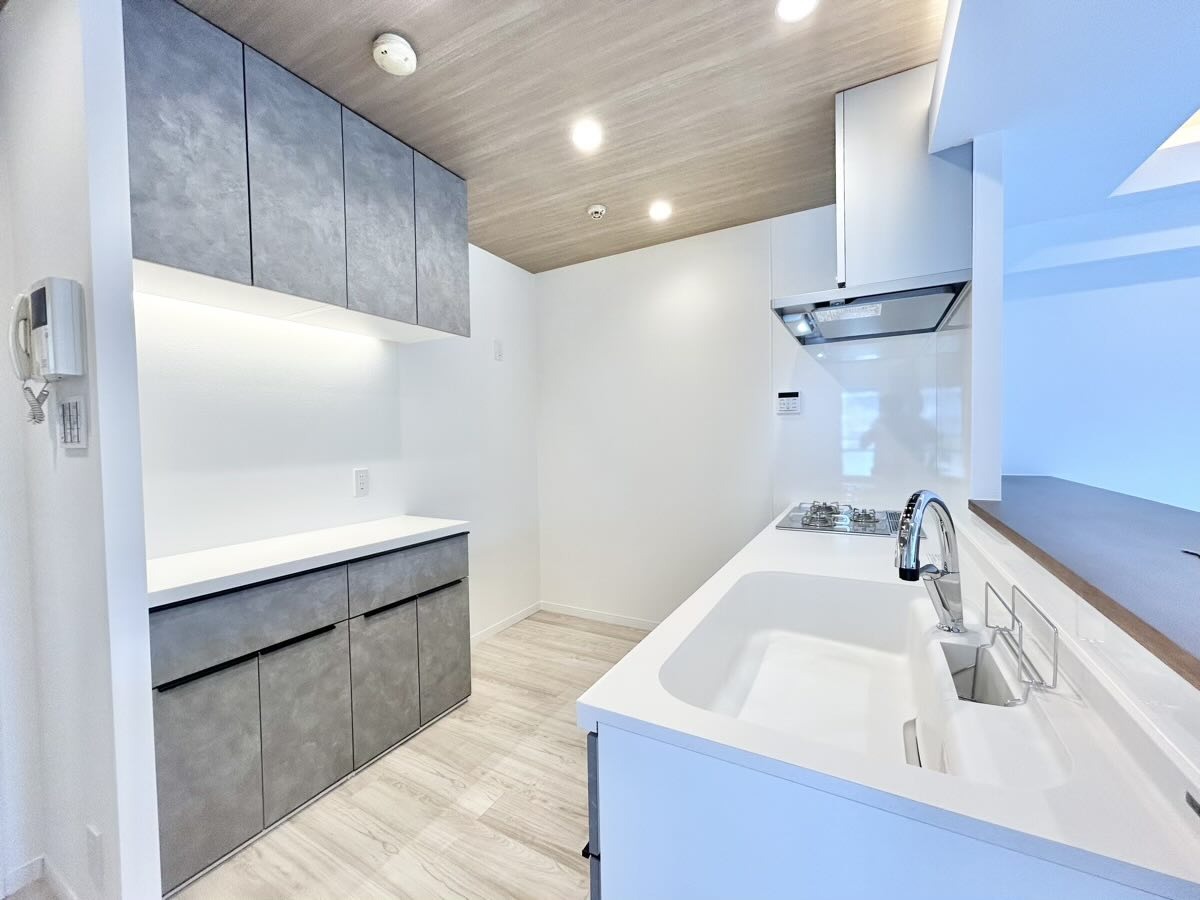 シンクはカウンターと合わせた白。清潔感がUPしますね。