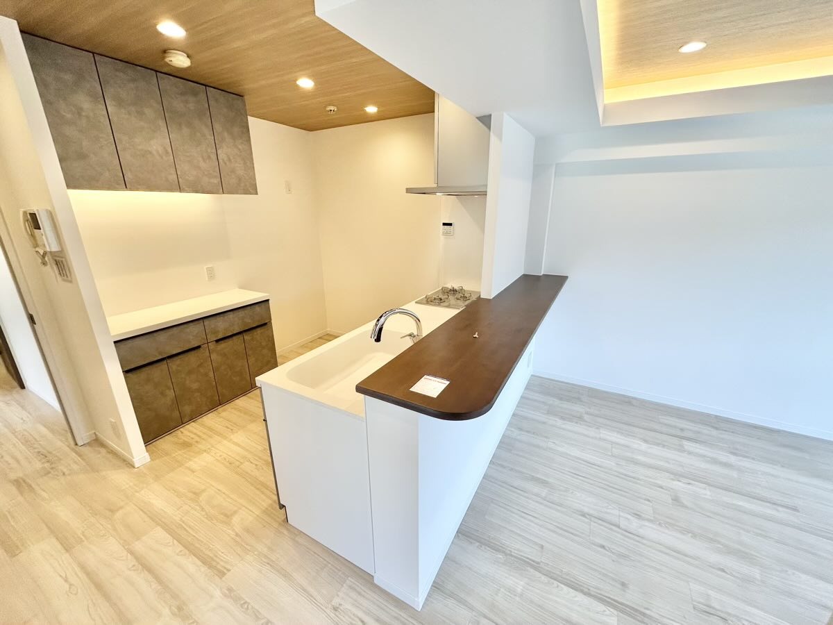 リビングで遊ぶお子様を見守りながらお料理ができる、対面キッチン。