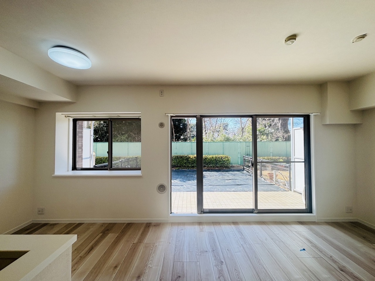 大きな開口部から明るい光が差し込むリビング。日中の室内の明るさがこの部屋の魅力です。