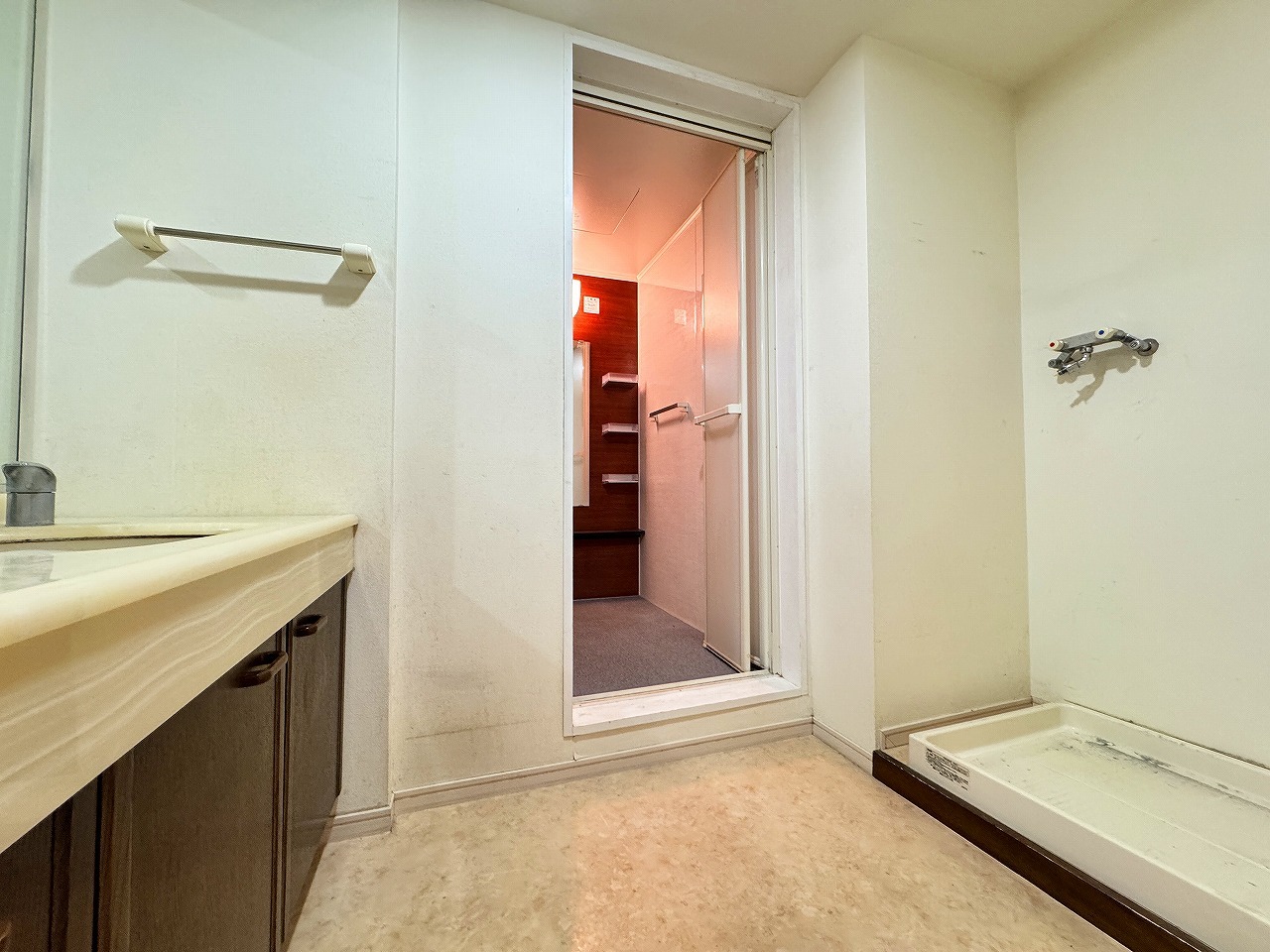 たっぷりの収納を設けたシャワー付洗面台で快適な暮らし。