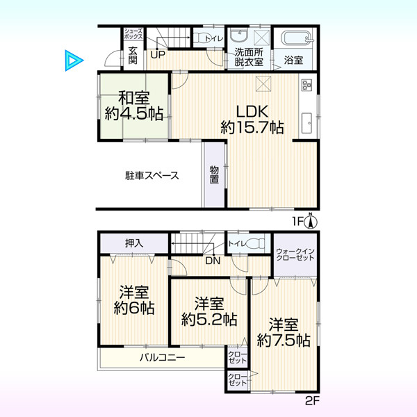 | 間取 | 4LDK (LDK15.7帖、洋室7.5帖、洋室6帖、洋室5.2帖、和室4.5帖) | ||