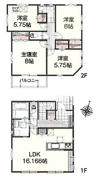 | 間取 | 4LDK (LDK16.16帖、洋室8帖、洋室6帖、洋室5.75帖、洋室5.75帖) | ||