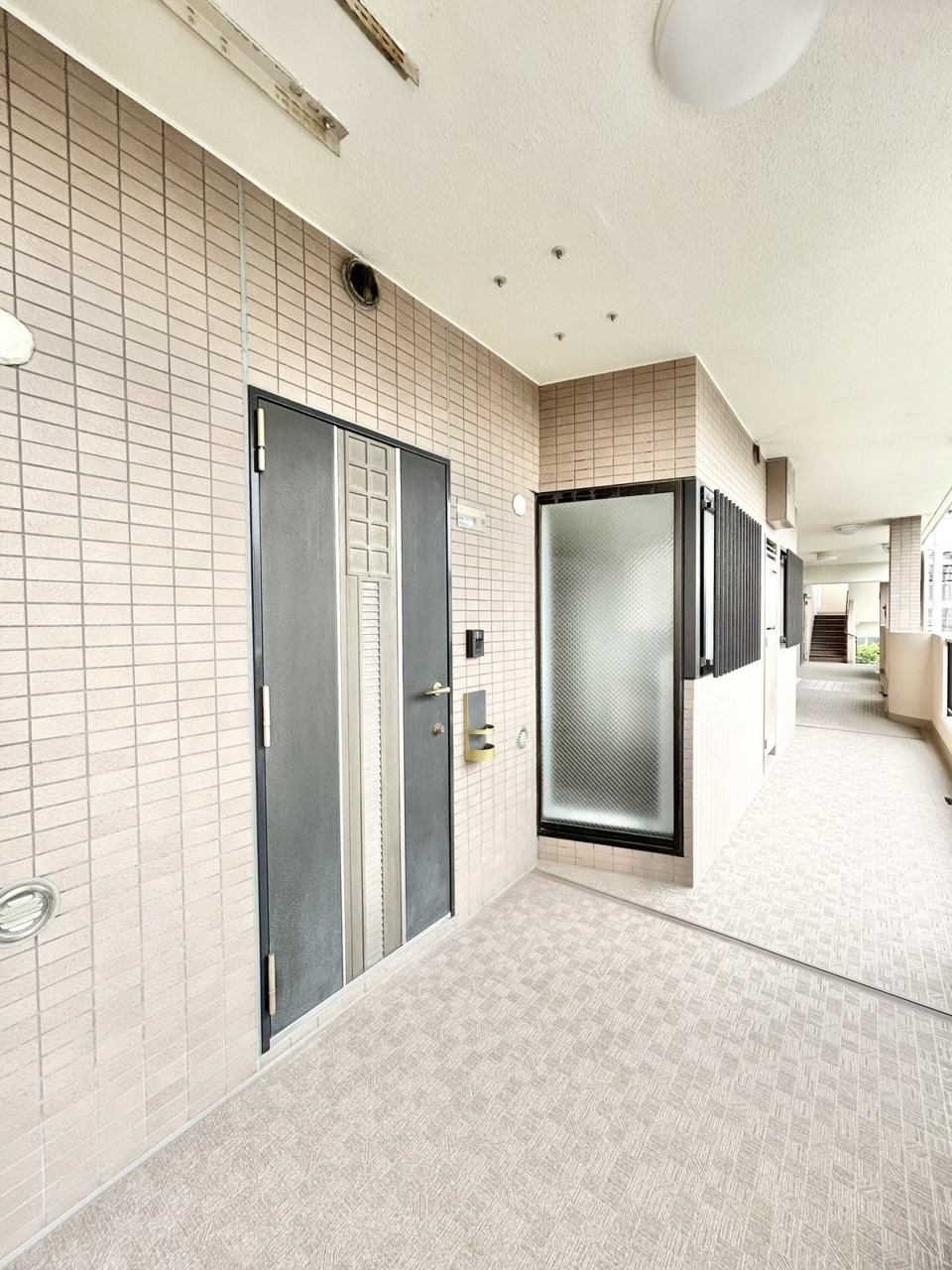 落ち着いた雰囲気のエントランス。オートロック式で防犯面にも配慮がなされ、宅配ボックスも備わっています。