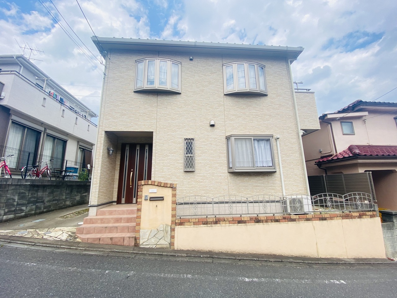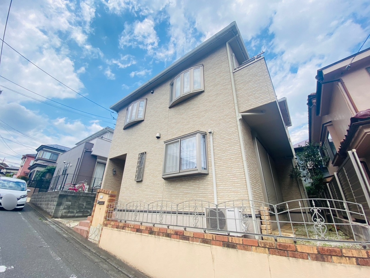 前面道路は広く、駐車がしやすいです。駐車スペース2台分ございます。