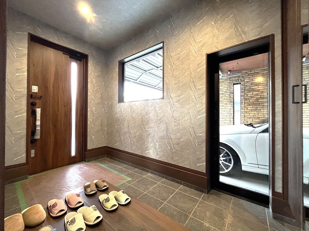 愛車が見られる広々とした玄関