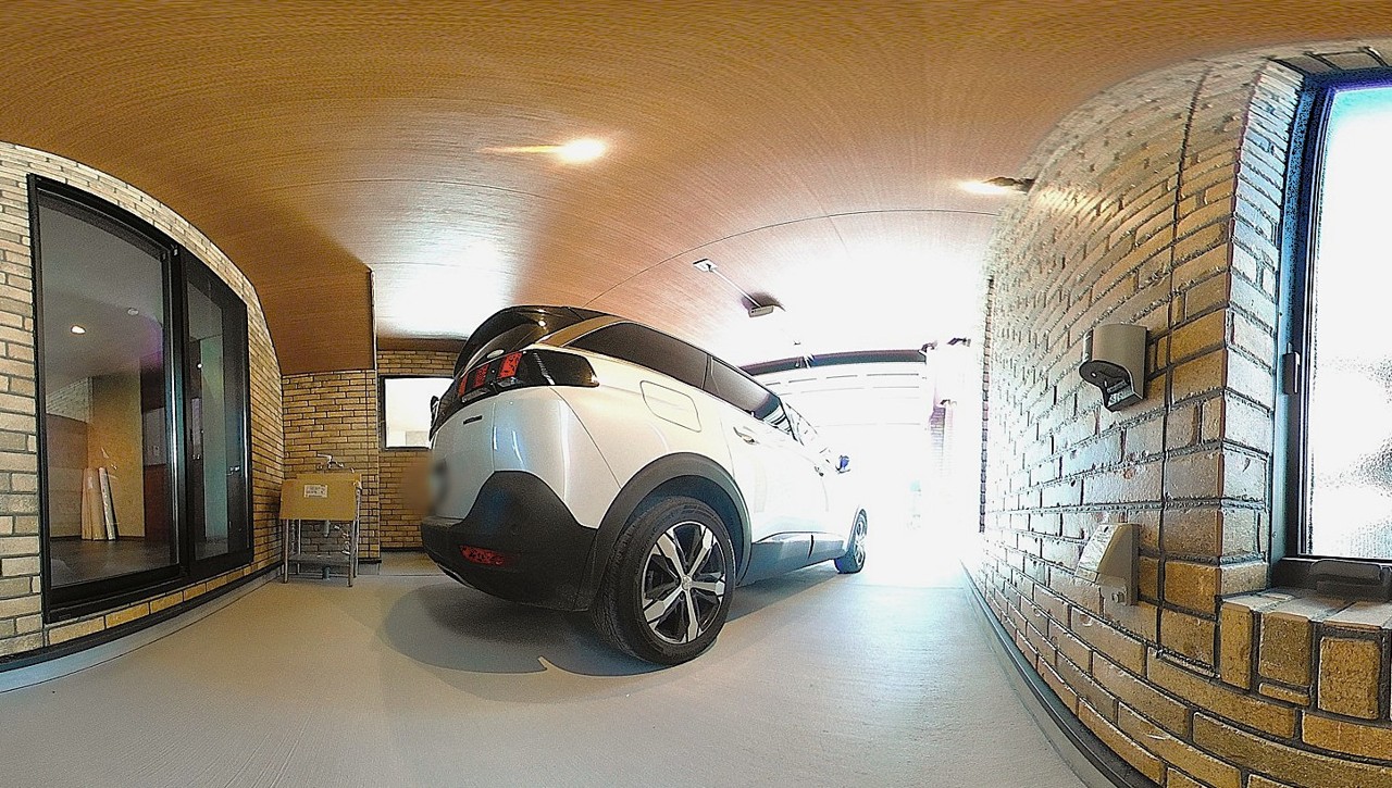 通路部分に屋外のカースペース2台とガレージハウスに1台駐車可能です。(車種によります)