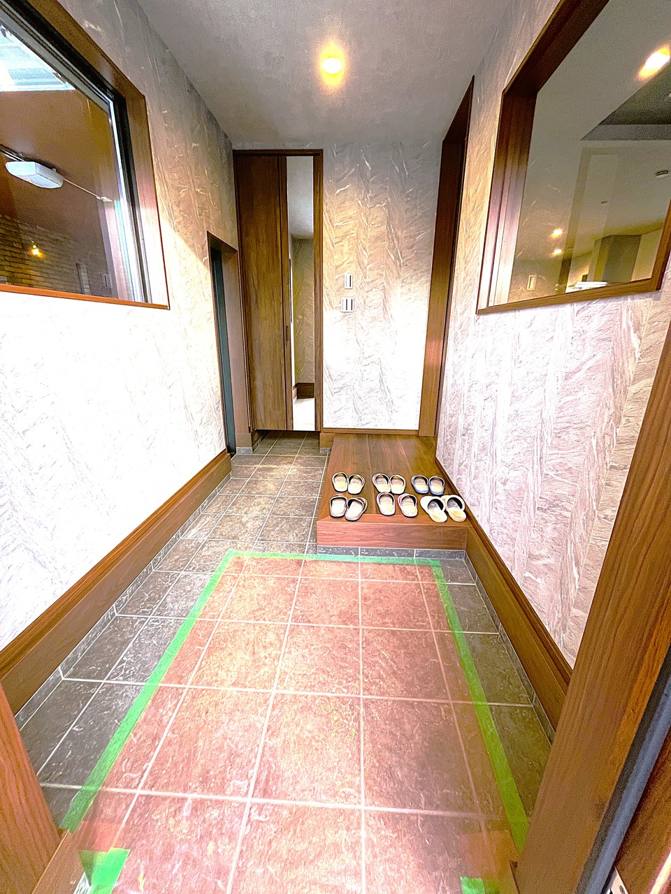 ガレージからも入れる広い土間玄関。奥にはシューズインクローゼットがあります。