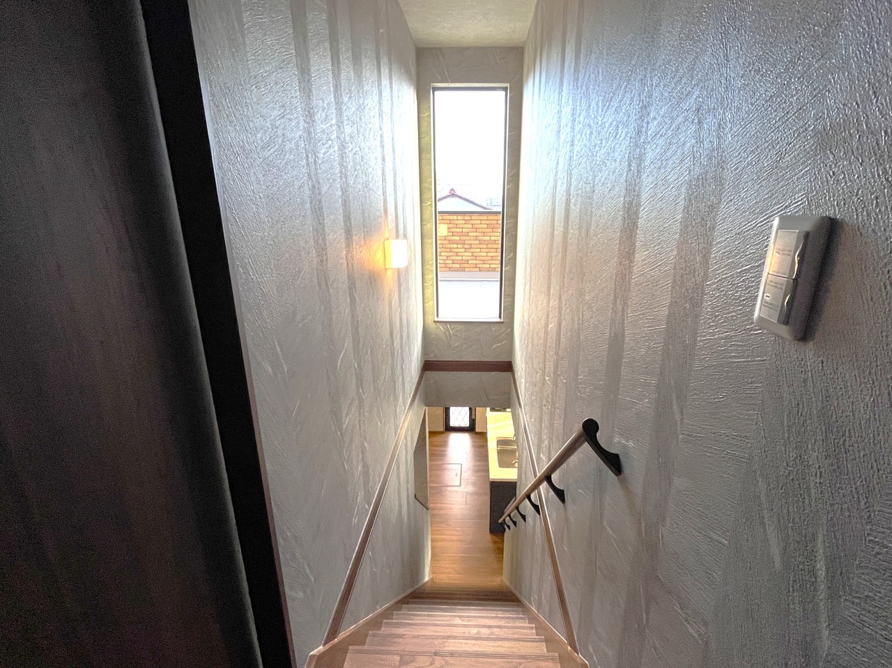 リビングイン階段の上にはバルコニーから明るい日差しが入ります。