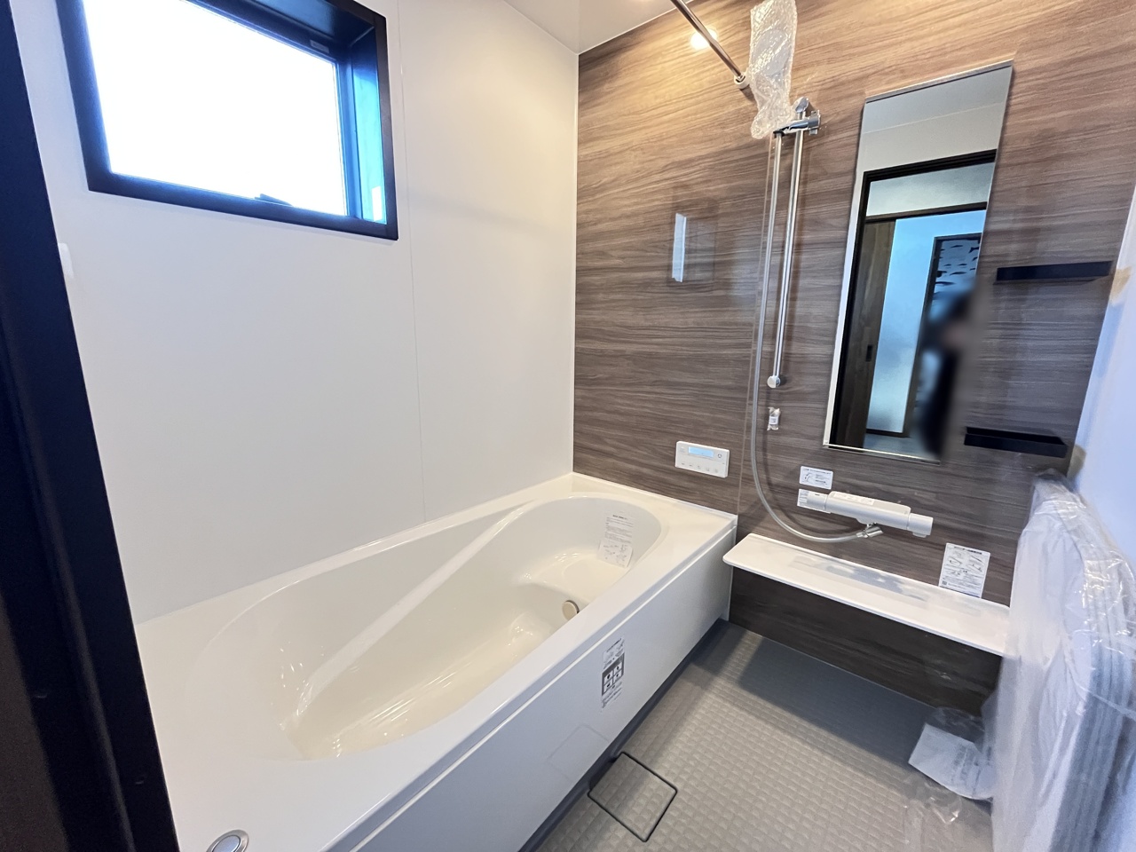 落ち着いた色味の浴室で1日の疲れをゆっくりと癒してください。