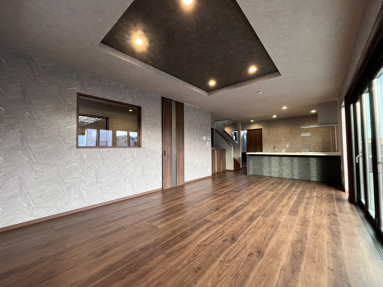 大きな開口部から明るい光が差し込むリビング。日中の室内の明るさがこの部屋の魅力です。
