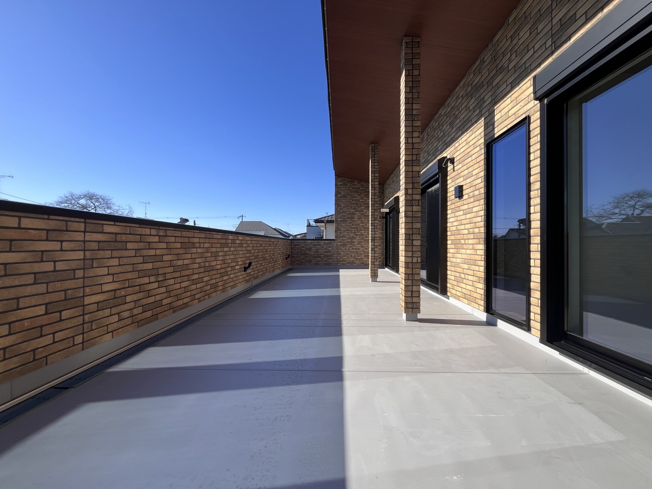 南側のお部屋から出入りできる、奥行きのあるワイドバルコニー。心地よい陽射しと暖かな風を楽しむことが出来ます。