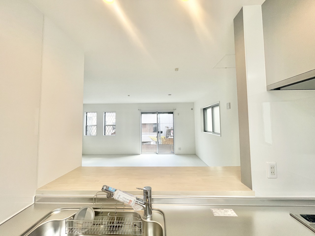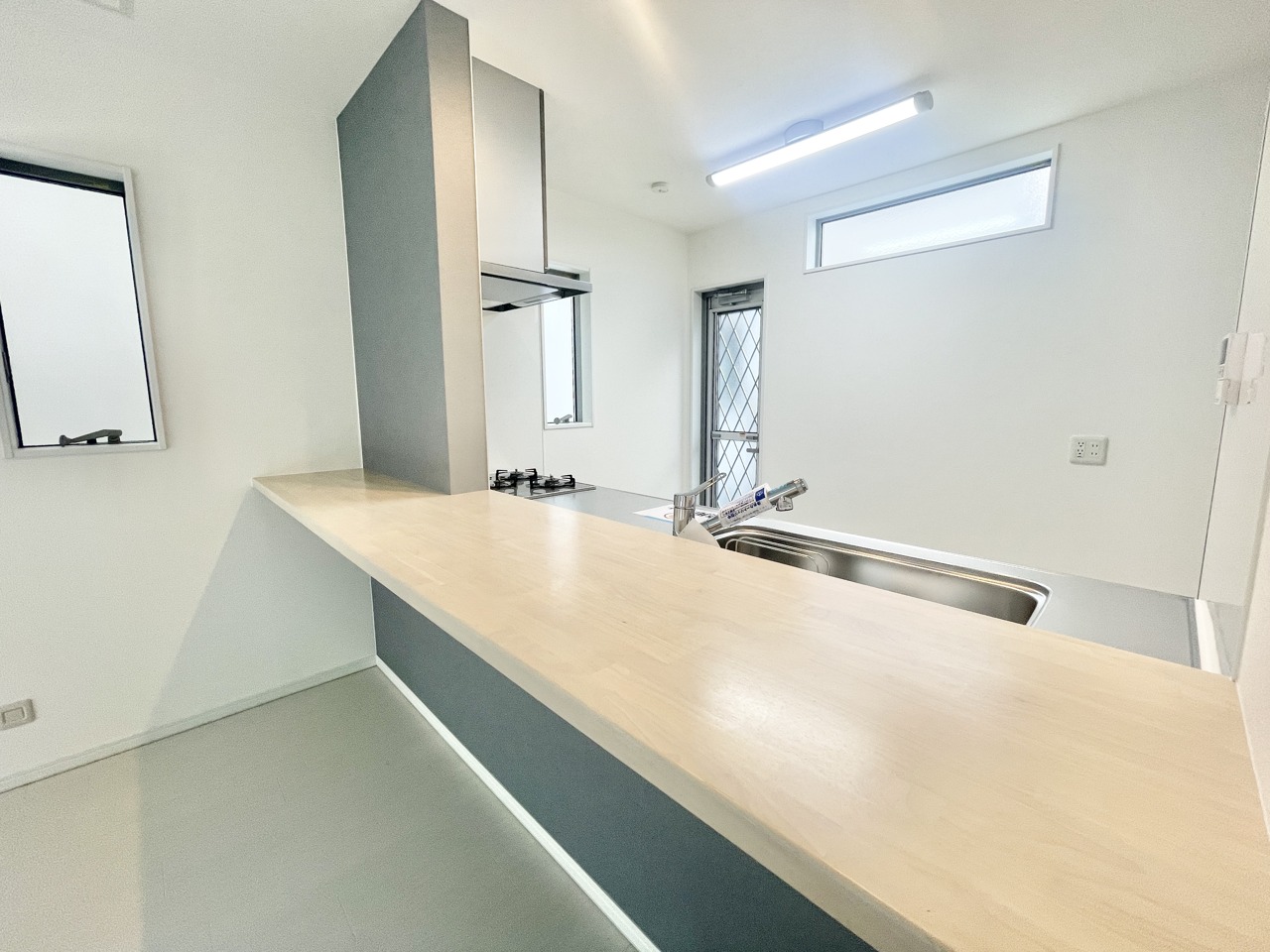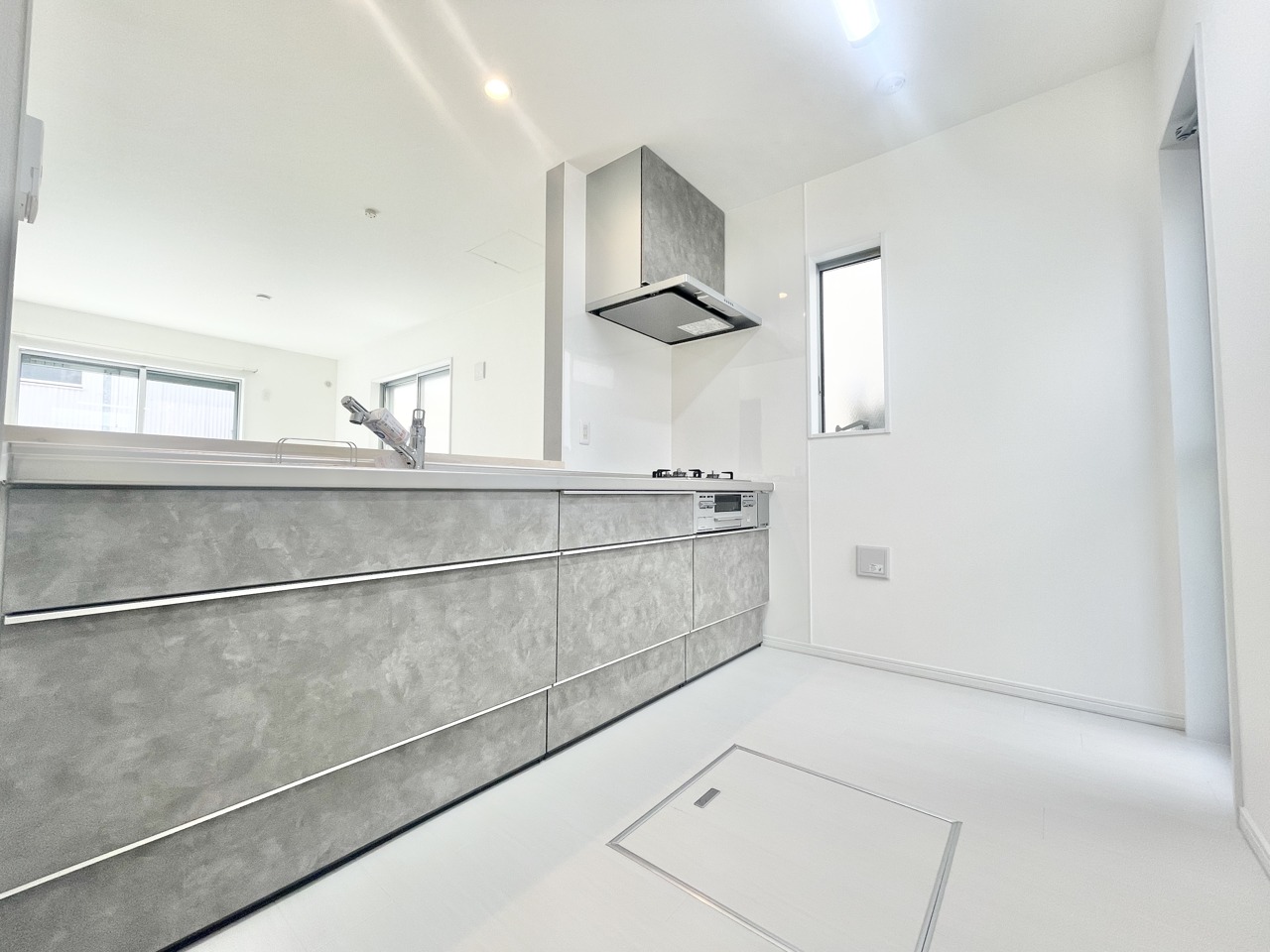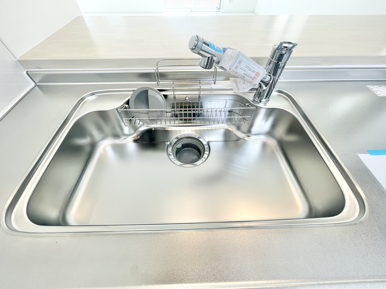 照り返しが眩しいシンク付きのキッチンで、楽しくお料理しませんか。