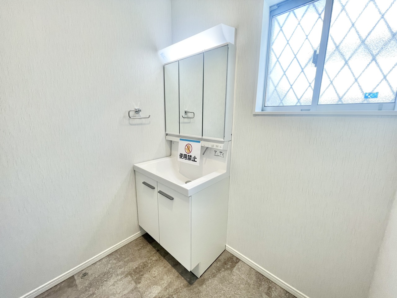 収納豊富な三面鏡付洗面化粧台。水回りのあれこれがキレイに収まりそうですね。