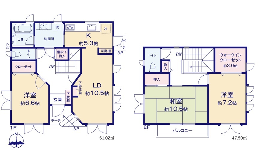 | 間取 | 3LDK + ウォークインクローゼット有 (LD10.5帖、K5.3帖、洋室6.6帖、和室10.5帖、洋室7.2帖) | ||