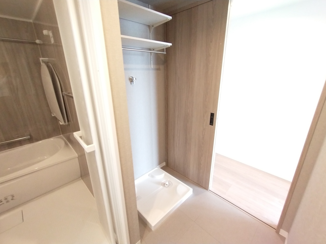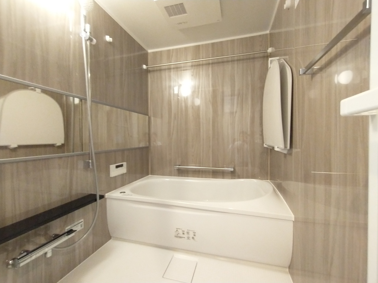 バスユニット1坪タイプ、浴室乾燥機、手すり付き。