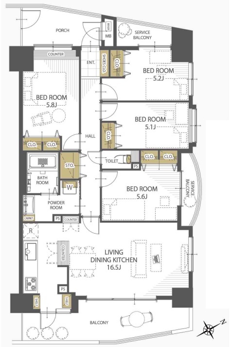 | 専有面積 | 86.14m² (壁芯) | ||